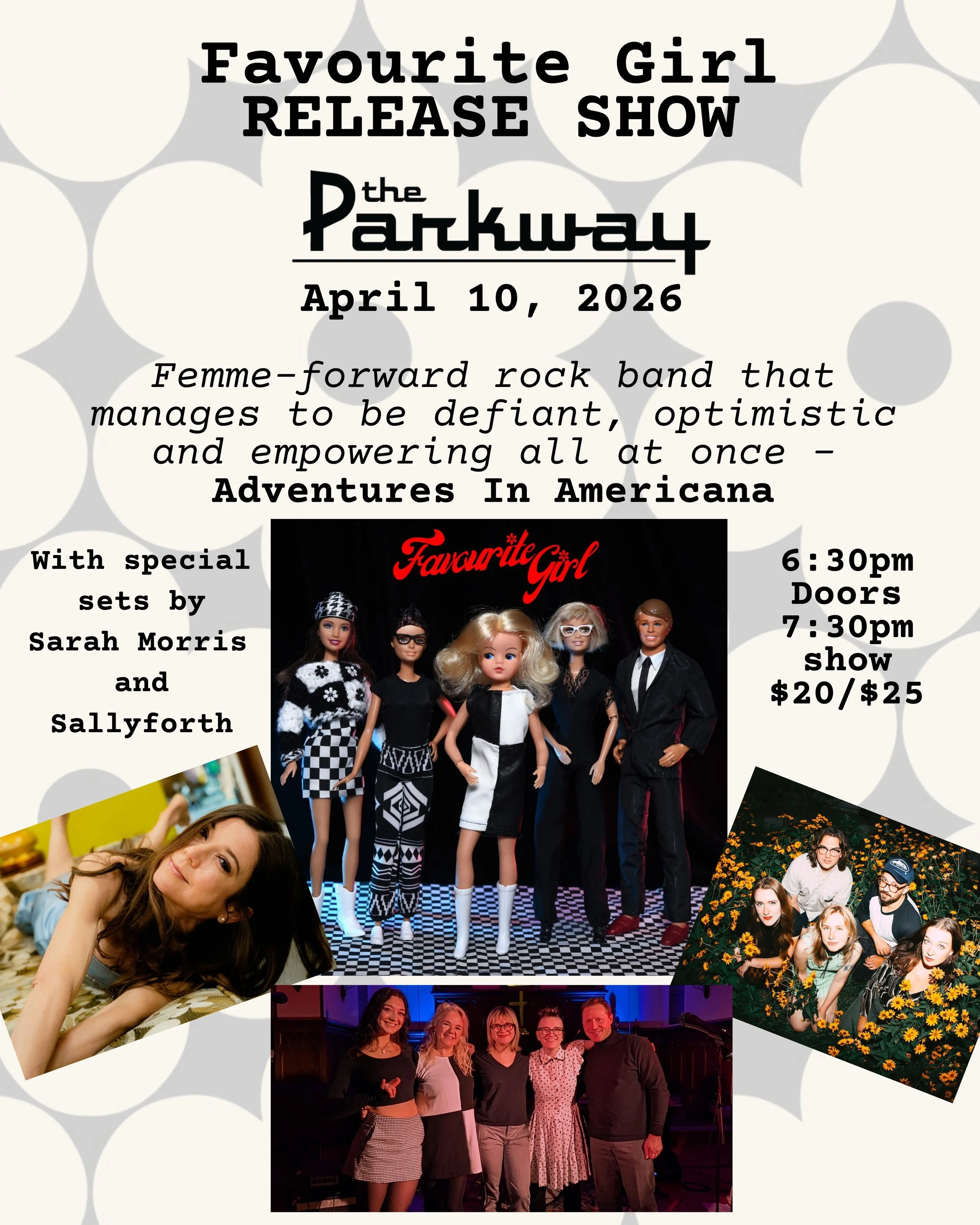 Celebrate the highly-anticipated debut album by Favourite Girl, the new project led by British songwriter Katy Vernon, who has been performing original melodic folk pop for over 25 years in the Twin Cities and in the UK. Joined by Allie Pikala, Daisy Forester, Alyse Emanuel, and Paul Odegaard — Favourite Girl blends harmony, rock, and a dash of brass! “A femme-forward rock band that manages to be defiant, optimistic, and empowering all at once” (Adventures in America). Opening the night are sets by Sarah Morris and Sallyforth.