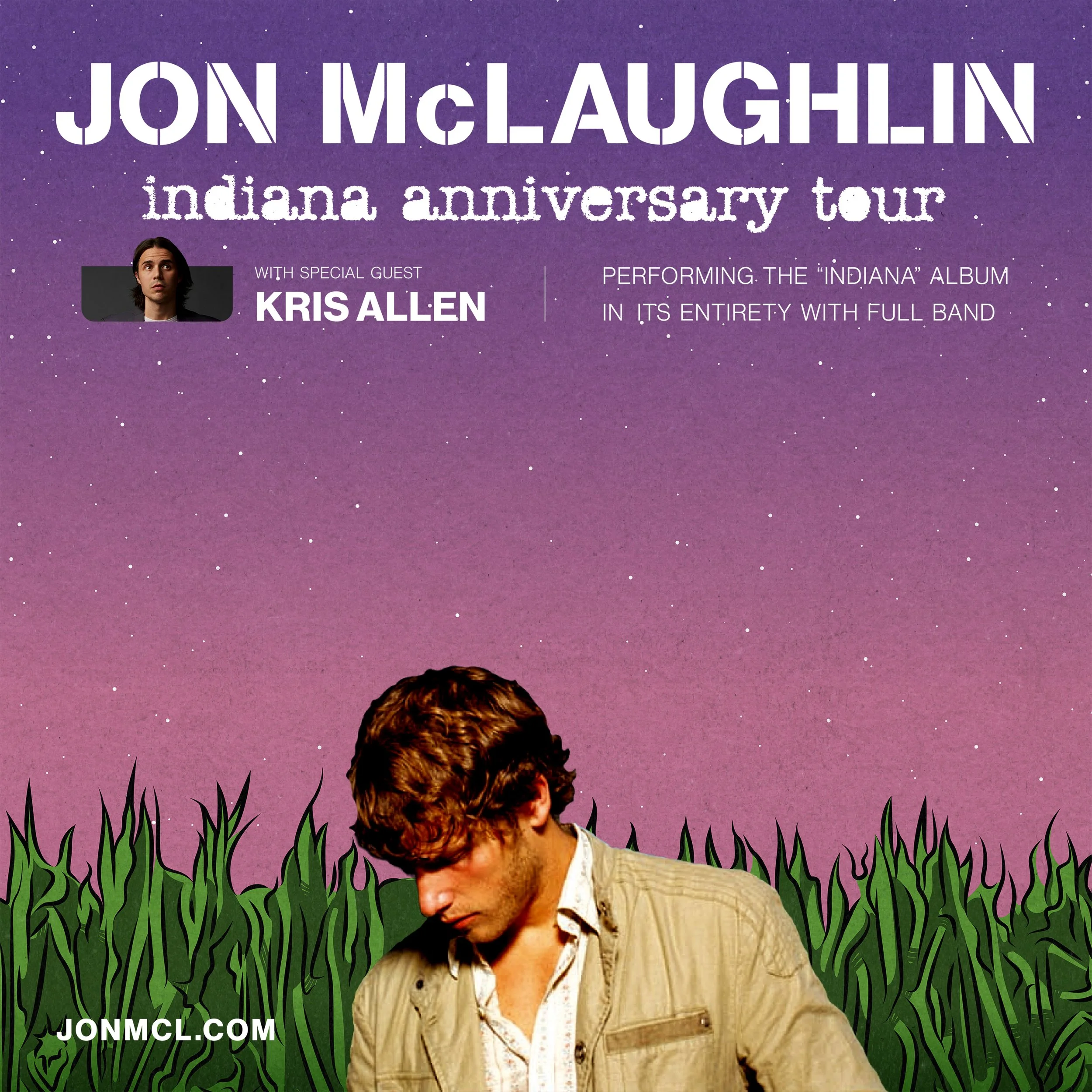 Celebrated American singer/songwriter Jon McLaughlin comes to The Parkway in celebration of the 15th anniversary of his iconic debut album, 'Indiana' — performed in its entirety with a full band! Opening the night is a set by Kris Allen, winner of the 8th season of American Idol.