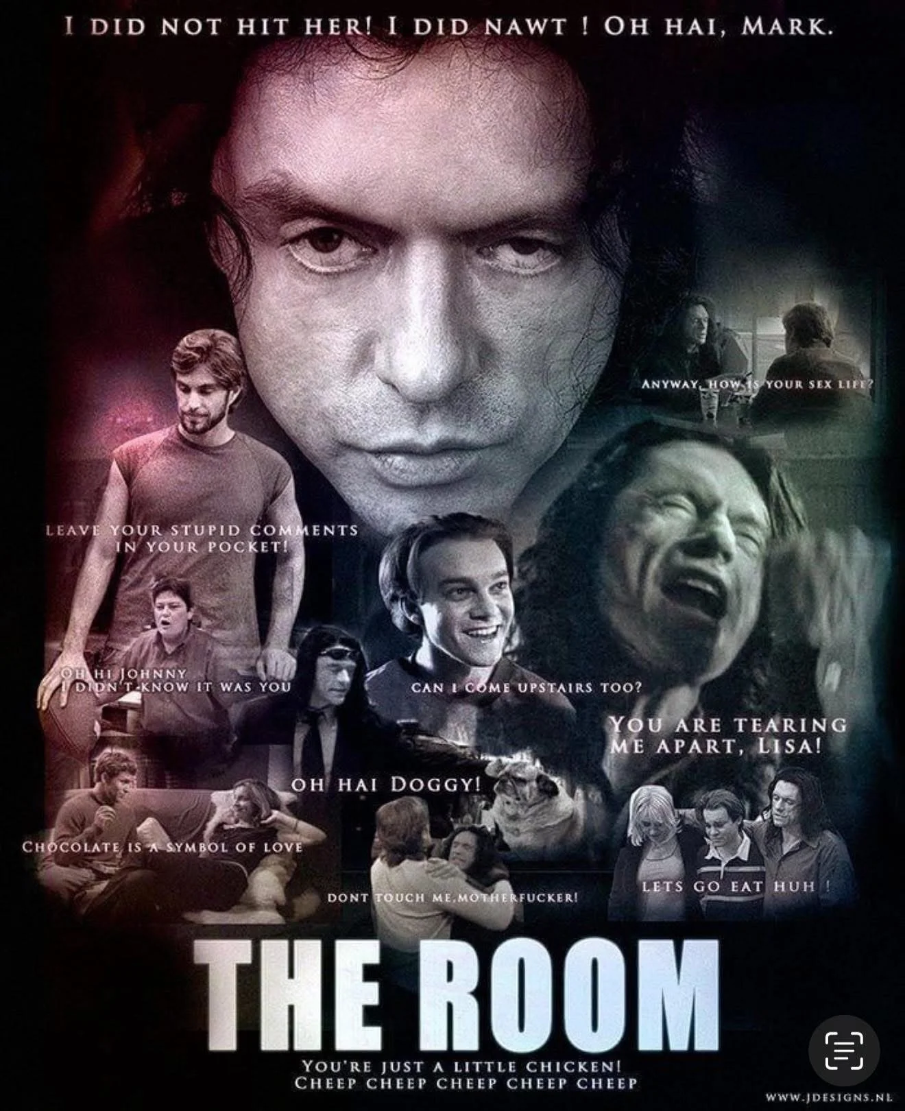 The Room is a 2003 American independent romantic drama written, directed, and produced by Tommy Wiseau, who also stars in the film alongside Juliette Danielle and Greg Sestero. Set in San Francisco, the film is centered around a melodramatic love triangle between amiable banker Johnny (Wiseau), his deceptive fiancée Lisa (Danielle), and his conflicted best friend Mark (Sestero).