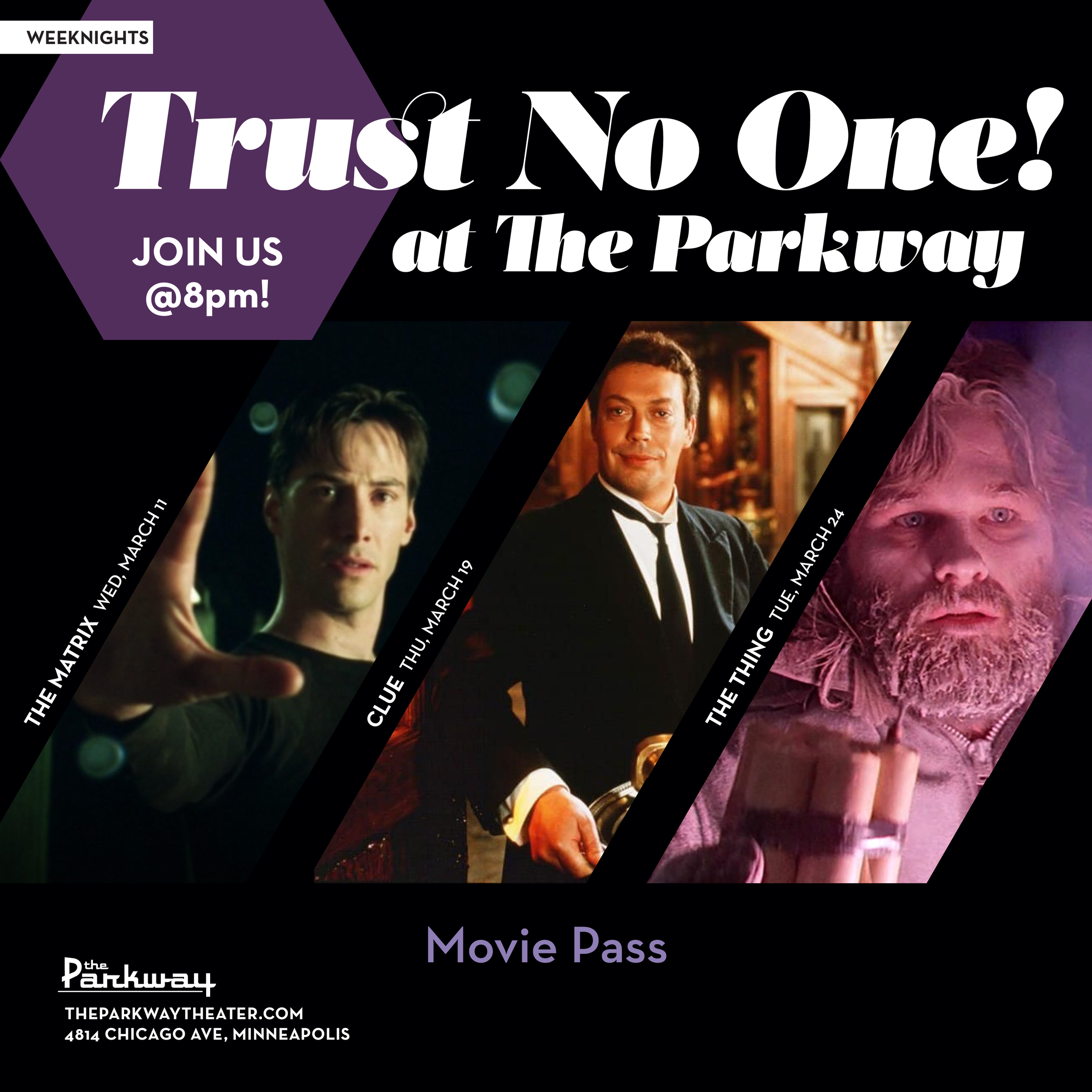 Trust issues? Do we have some films for you! March is the month to Trust No One! 3 films about back-stabbing, treachery, and twists! Afraid of commitment? You can always buy tickets to the individual films as well!